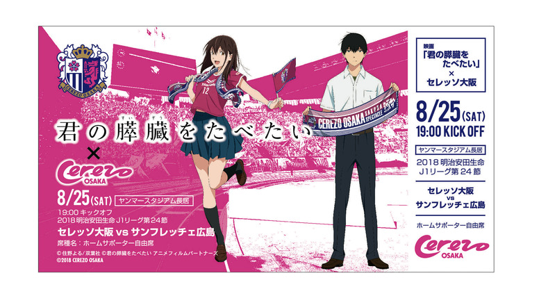 劇場アニメ「君の膵臓をたべたい」×セレッソ大阪のコラボレーションオリジナルチケットの発売が決定!