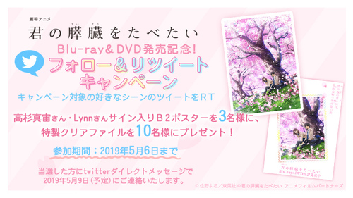 抽選で僕役 #高杉真宙さん、山内桜良役 #Lynnさんサイン入ポスターを3名様、