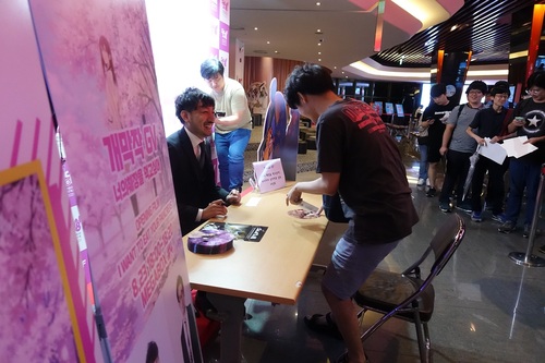 また、上映後の監督サイン会には、30名のファンが参加(30名先着限定)し、牛嶋監督からは一人ずつへ丁寧に、サインと「カムサハムニタ(韓国語でありがとうの意)」のハングル文字が贈られました。参加者から監督に直接伝えられた感想としては「好きな作品のアニメ化と聞いて心配もあったが、それを裏切る内容だっただけでなく、期待を遥かに超える出来だった」、「このような立派なアニメ作品に仕上げてくれてありがとう」といった感想が寄せられました。