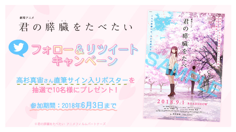 キャンペーンの投稿をリツイートしていただいた方の中から抽選で10名様に「僕」役:高杉真宙さん直筆サイン入りポスターをプレゼント!